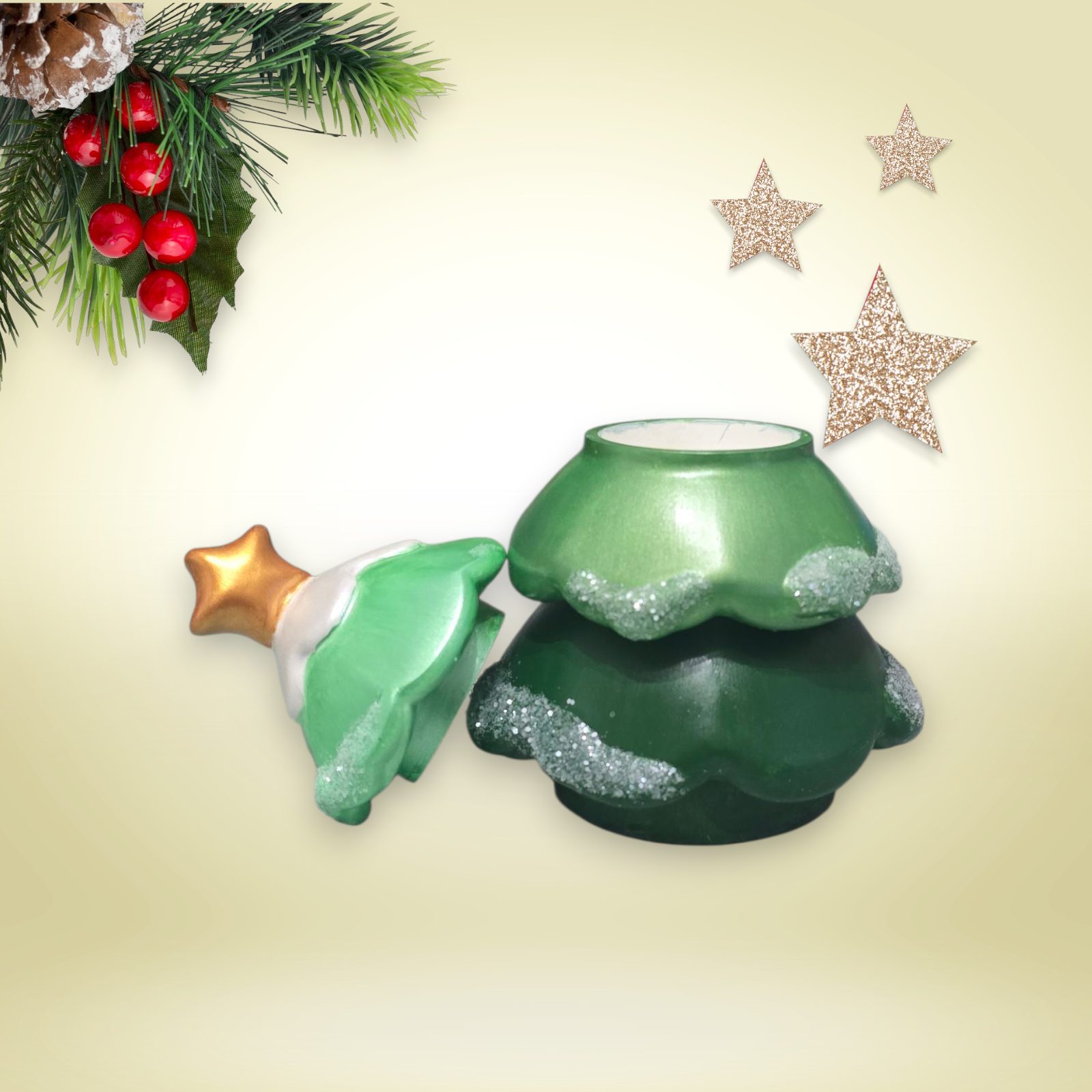 Our Handmade Stackable Christmas Tree Candle Set features three layers of clean-burning soy wax, beautifully crafted in eco-friendly gypsum jars. A charming keepsake that looks as lovely wrapped under the tree as it does glowing beside it. 🎄✨