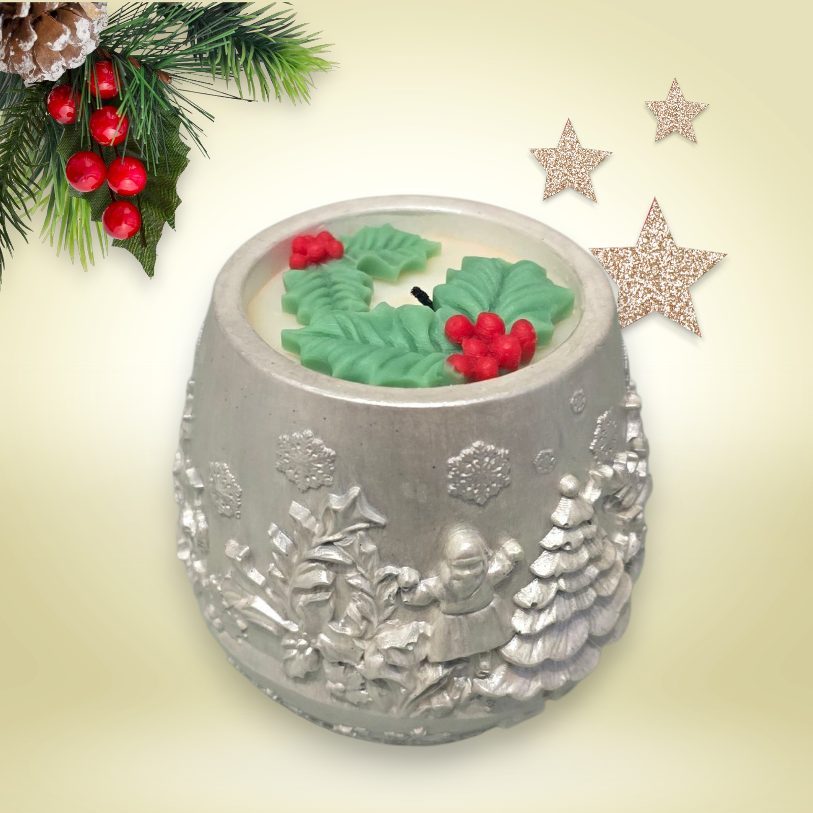 Hand-poured with natural soy wax and beautifully set in a silver gypsum jar, this festive candle features a detailed holly and berry design that captures the spirit of Christmas. A perfect gift or holiday accent that brings cozy cheer to any space. 🎄✨